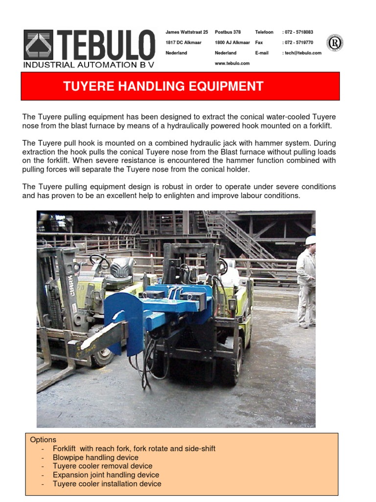 Apparatus For Changing Tuyeres On A Blast Furnace Patent 0012266