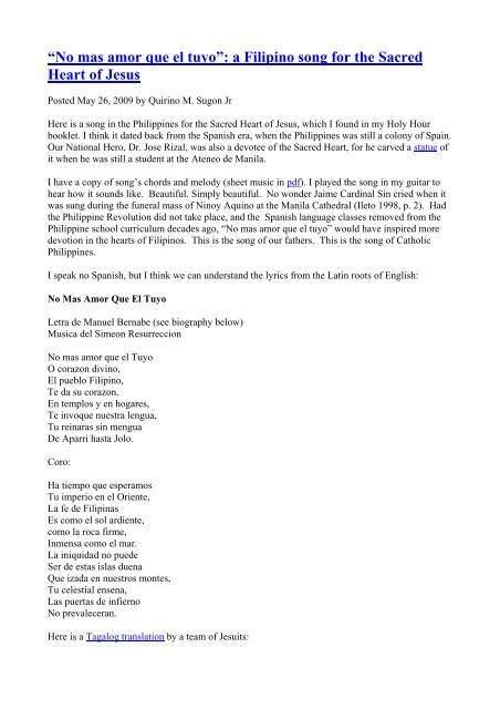 No Mas Amor Que El Tuyo A Filipino Song For The Sacred Heart Of