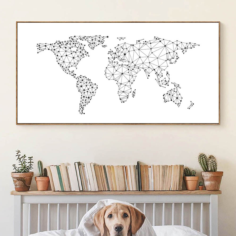 Abstract World Map Canvas Painting Line Art Posters And Prints Modern Office Study Room Decoration Wall Art Decor Picture Mural Lazada Singapore