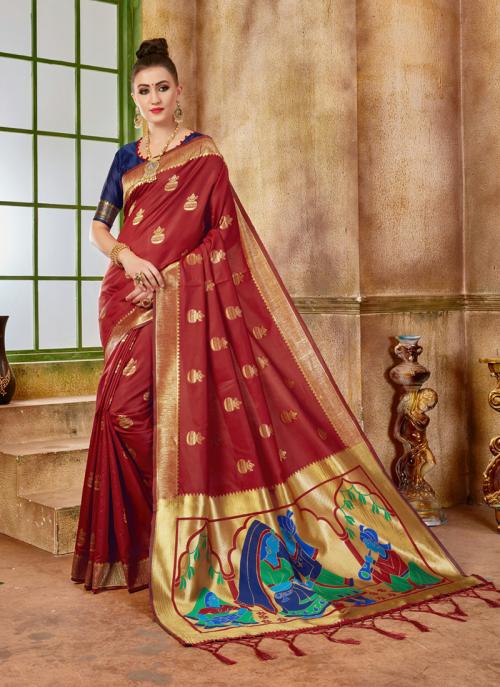 Shangrila Shahstram Silk Pure Paithani Saree Wholesale Online